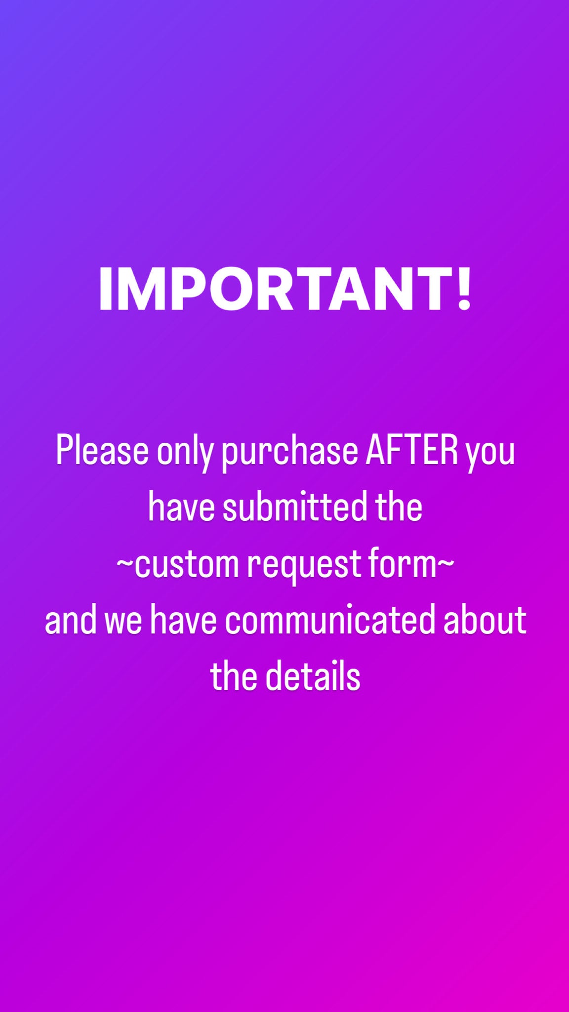 Please only purchase after you have submitted the custom request form and we have communicated about the details!
